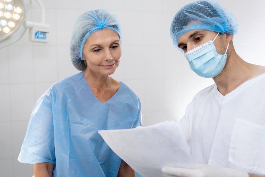 Hemşire, hastanın ameliyat bölgesi doğrulaması ve güvenli cerrahi kontrol listesi gibi protokolleri uygular.